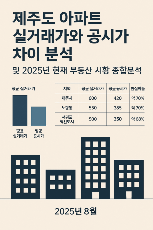 2025년 8월 현재 제주도 아파트 실거래가와 공시가 차이를 심층 분석한다. 지역별 실거래가 추세, 공시가격 산정 방식, 정부 정책의 영향, 그리고 제주 부동산 시장 전반의 시황을 종합 정리하여 투자자와 실수요자 모두 참고할 수 있는 인사이트를 제공한다.