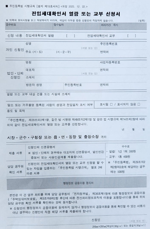 - 확정일자는 전입세대 열람표에는 나오지 않으므로, 확정일자부 확인서 또는 임대차계약서 원본으로 따로 확인해야 함